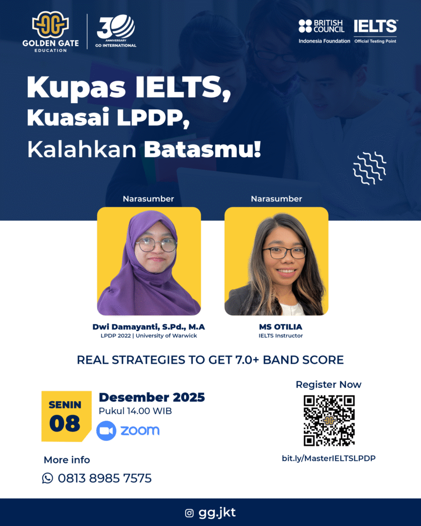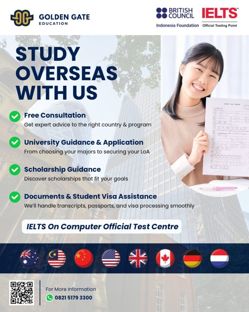 Since 1996, Golden Gate Education has been guiding students towards their dreams of studying abroad. As a trusted overseas educational consultancy agency, we specialise in connecting Indonesian students with world-class universities and programs across the globe.